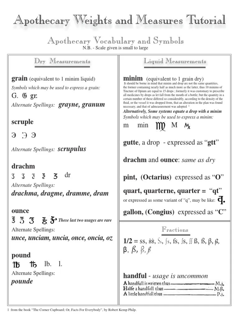 Metric Apothecary Conversion Chart Printable Apothecaries System