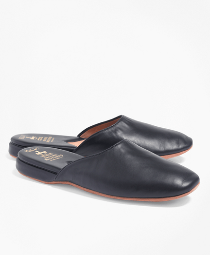 Men's Nappa Leather Backless Blue SlipOn Slippers Brooks Brothers
