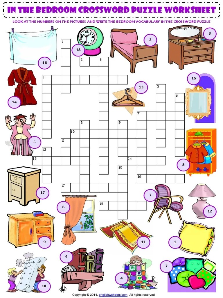 In the Bedroom Esl Vocabulary Criss Cross Crossword Puzzle Worksheet