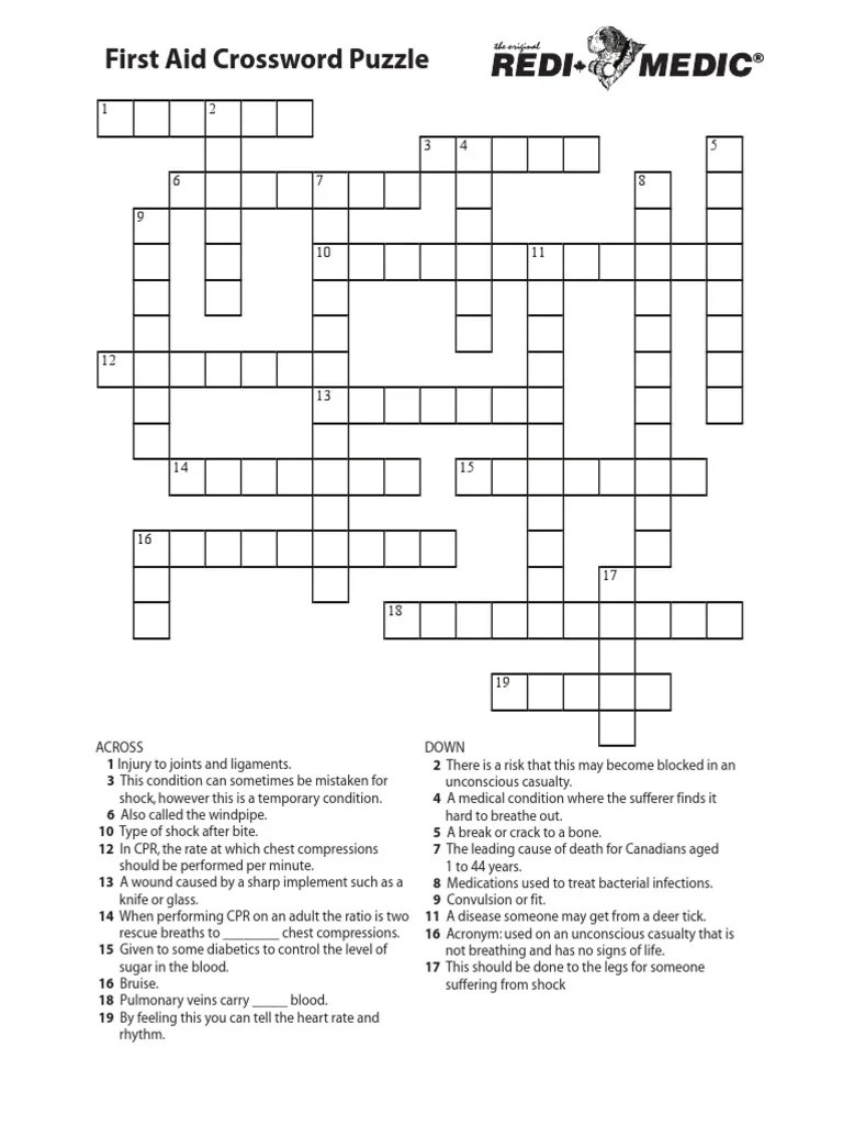 Printable Crossword Puzzle First Aid Printable Crossword Puzzles