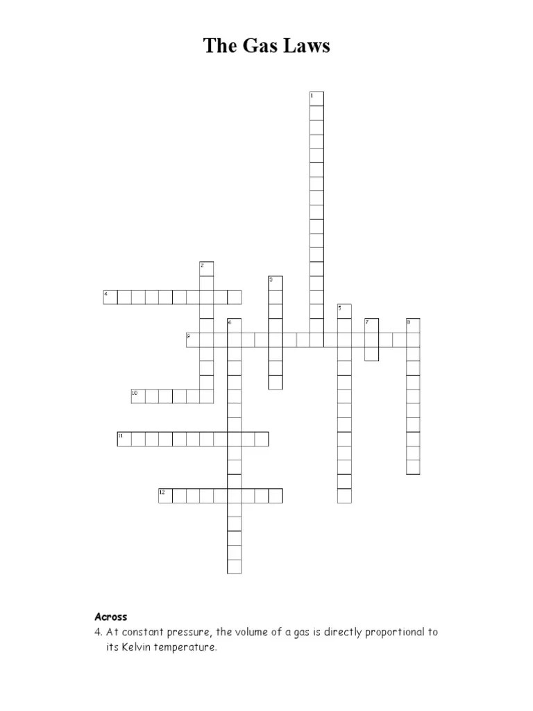 Gas Laws Crossword Puzzle WordMint