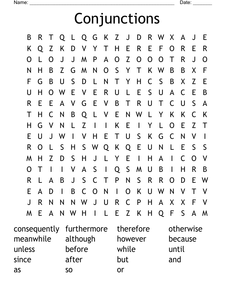 Conjunction Word Search WordMint