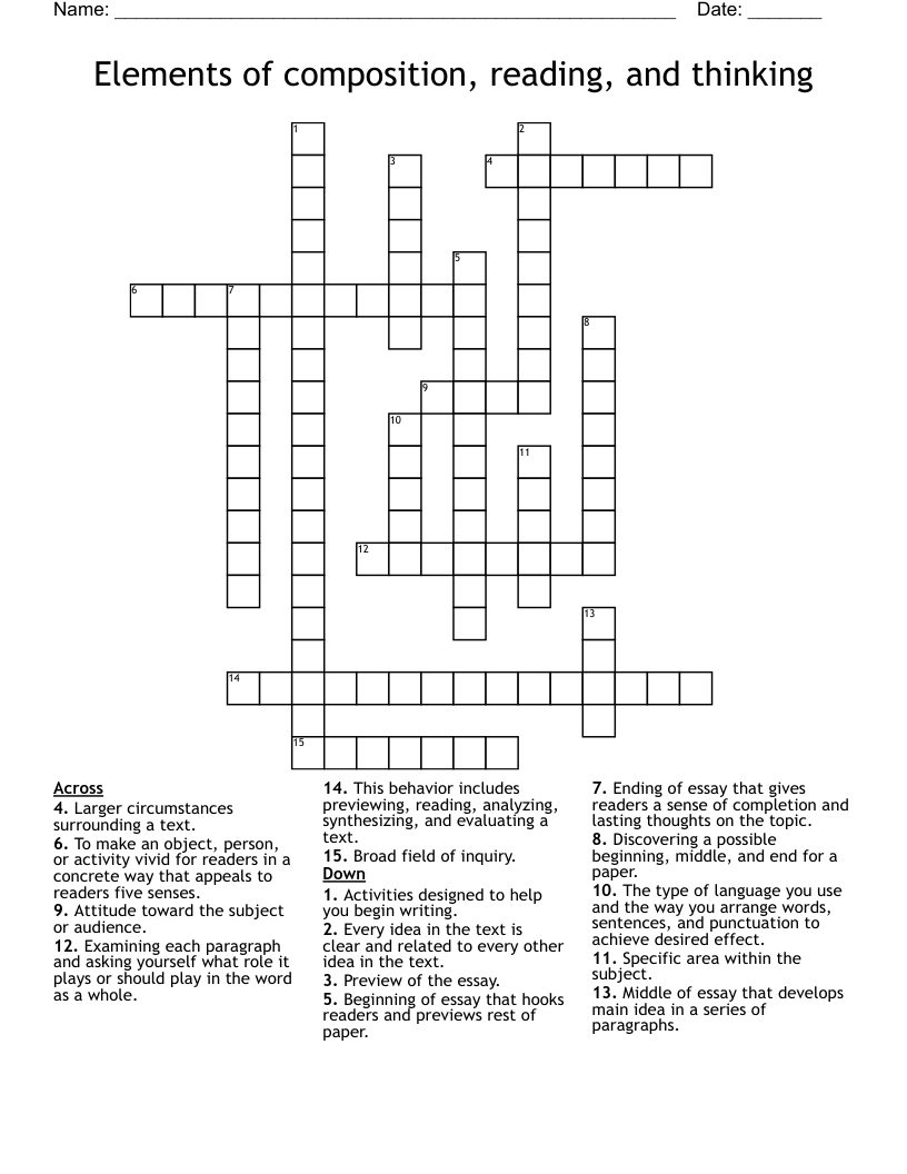 Elements of composition, reading, and thinking Crossword WordMint