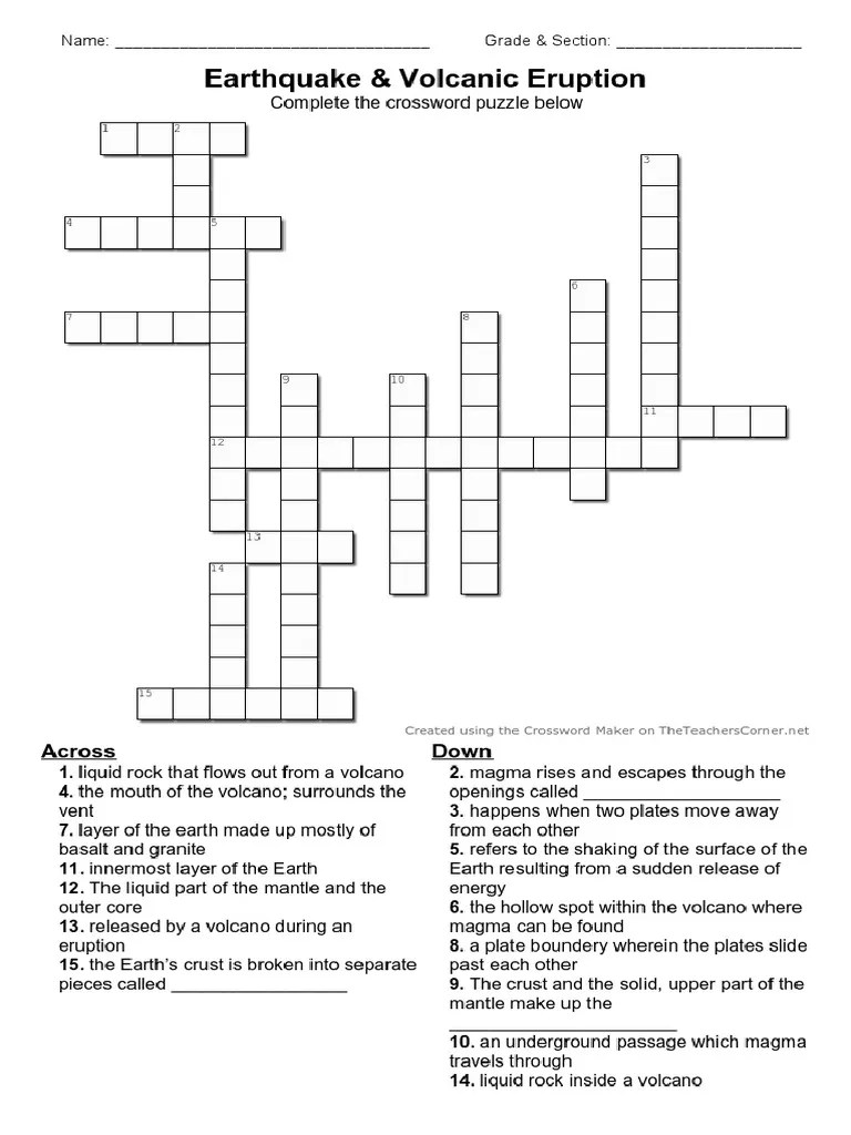 Earthquakes and Volcanoes Crossword WordMint