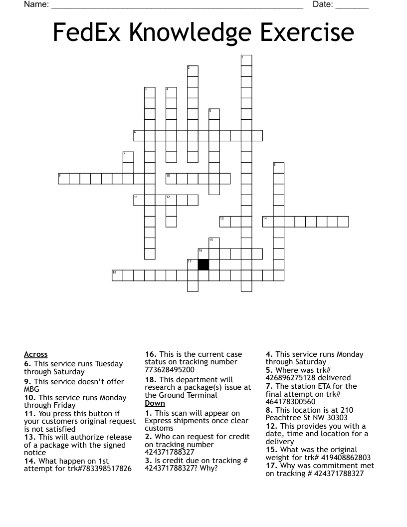 FedEx Knowledge Exercise Crossword WordMint