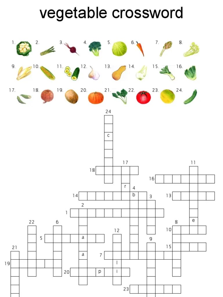 Vegetables crossword puzzle English ESL worksheets pdf & doc