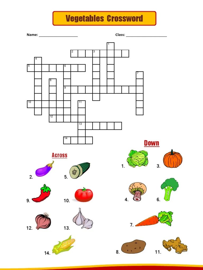 Crossword Puzzle Vegetables Free Printable Puzzle Games
