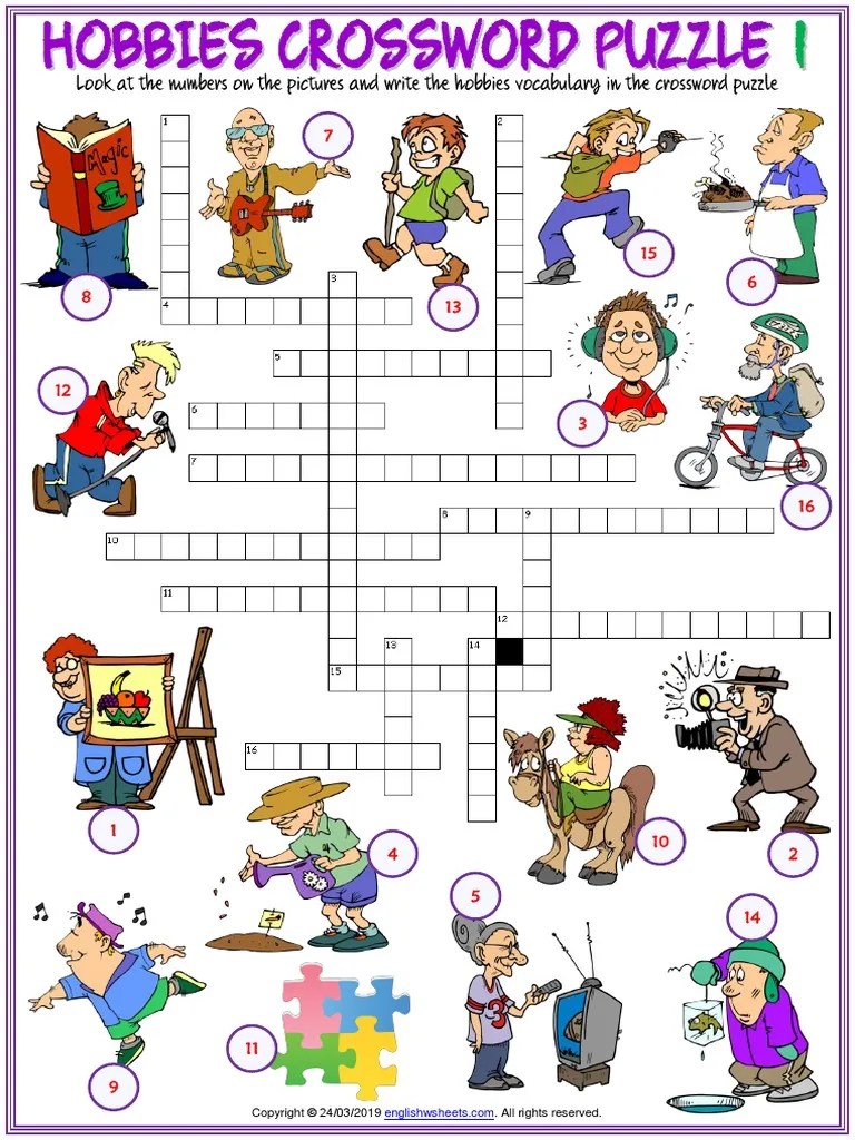 Hobbies Crossword Activity Fun ESL Worksheet For Kids