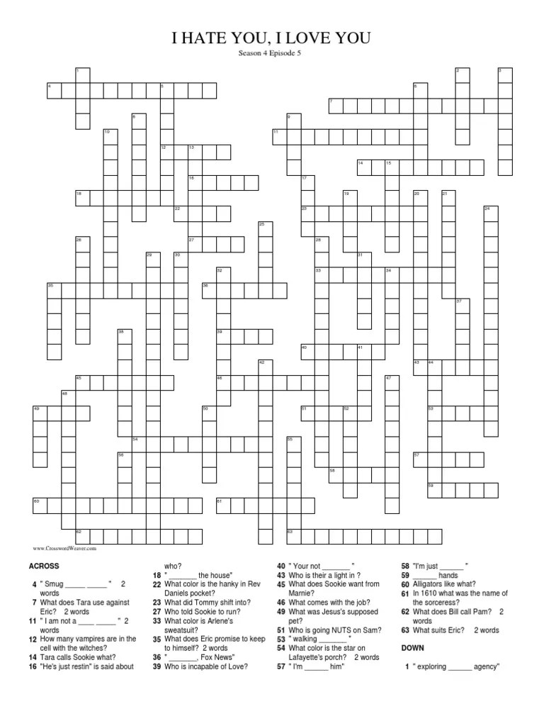 True Blood Season 4 Crossword Puzzle Episode 5 "i Wish i Was the
