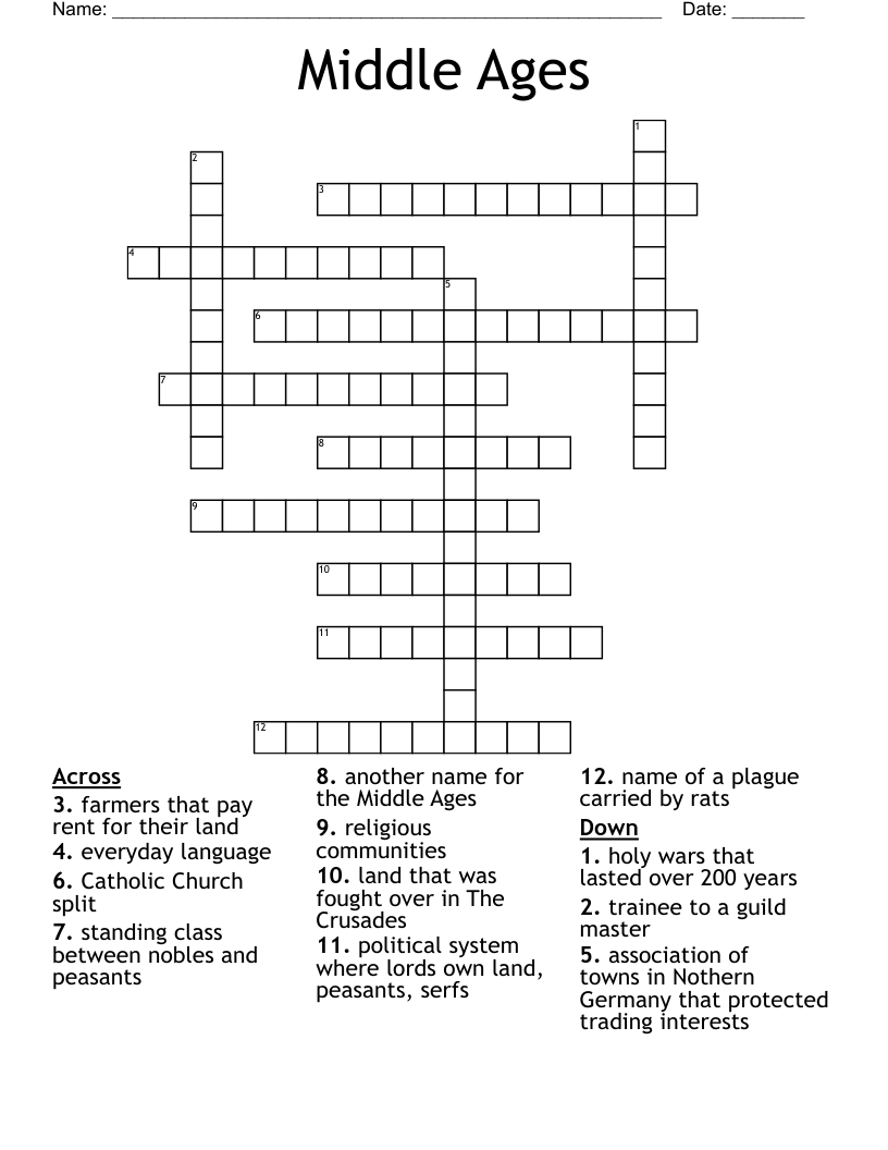 The Middle Ages Crossword WordMint
