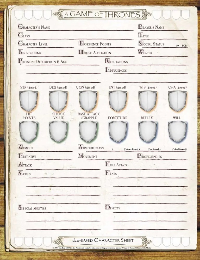 Sword & Sorcery 3.5 A Game of Thrones RPG Character Sheet