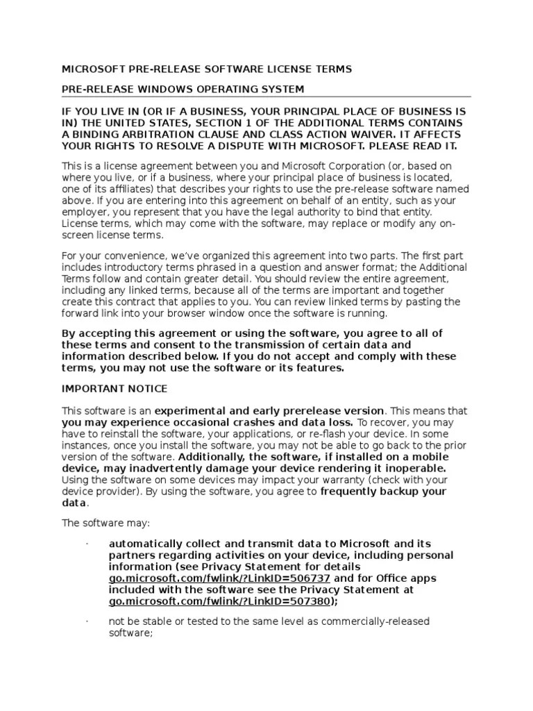 Microsoft Prerelease Software License Terms Arbitration H.264/Mpeg