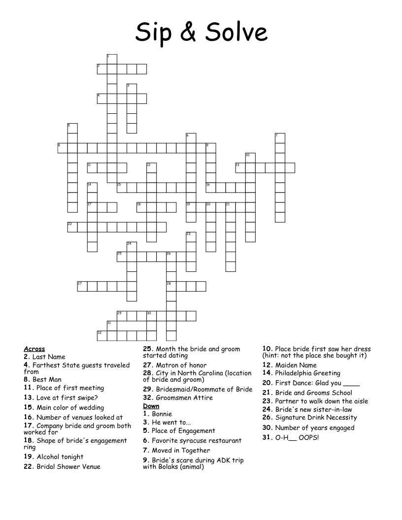 Sip And Solve Wedding Crossword Crossword Answers Puzzle Ruffles