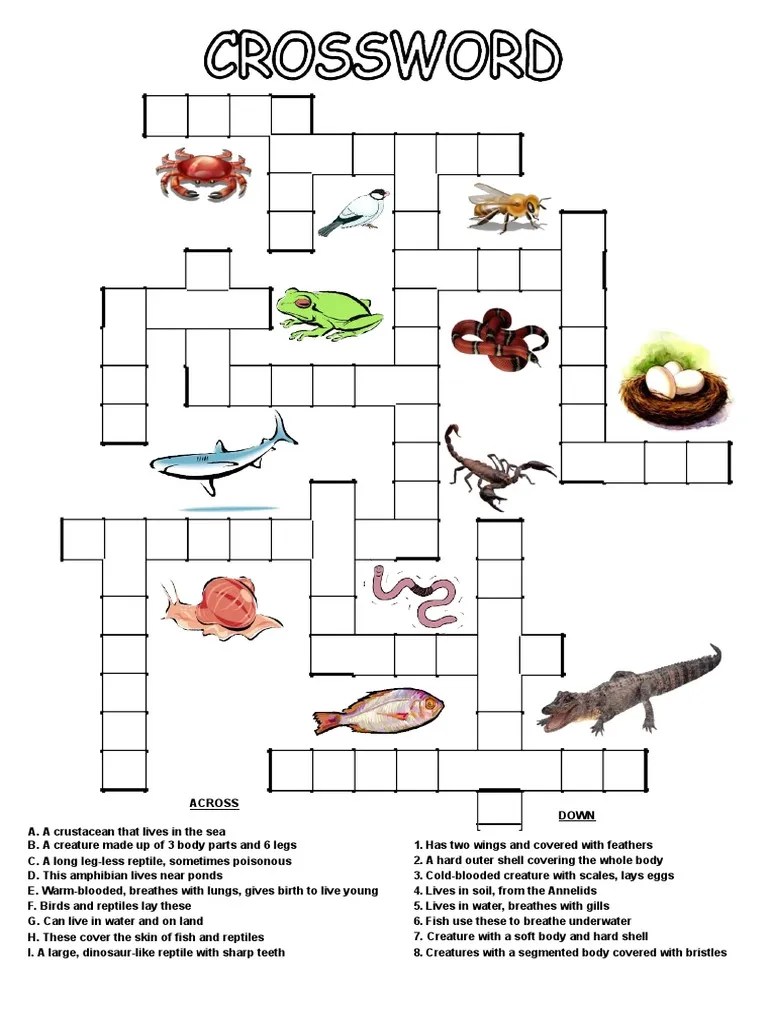 Crossword PDF Reptile Fish