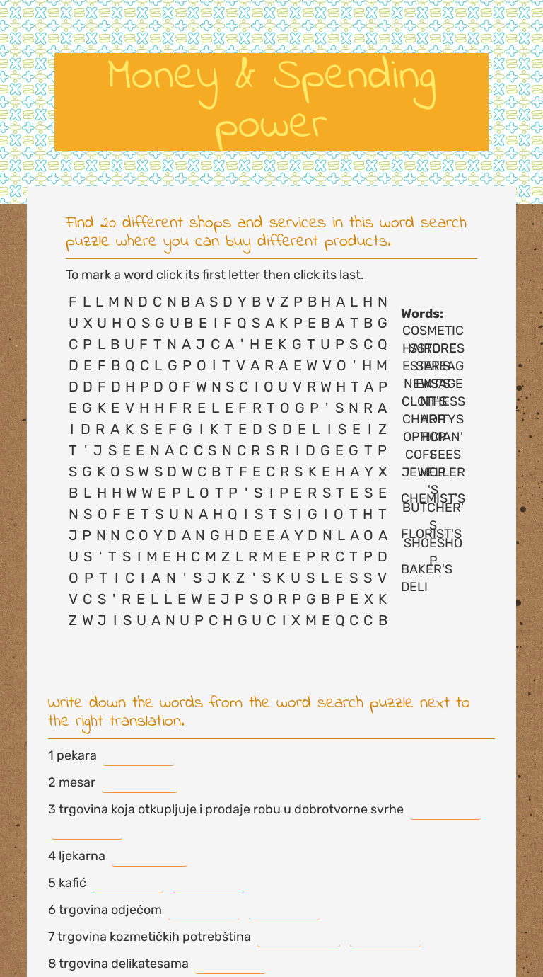 Money & Spending power Interactive Worksheet by Martina Terranova