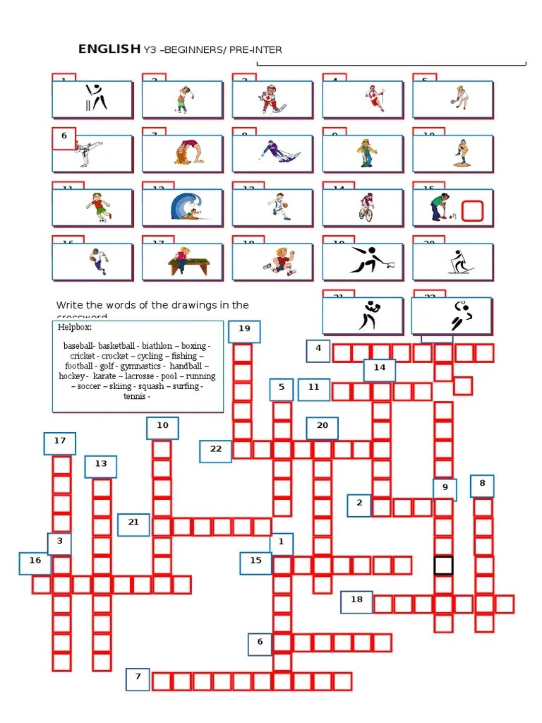 Sports vocabulary criss cross crossword puzzle worksheet