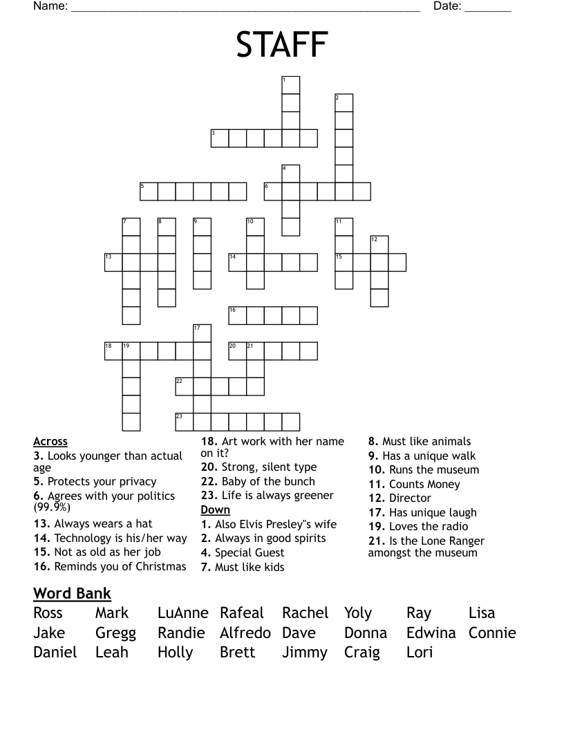 Staff Crossword Puzzle WordMint