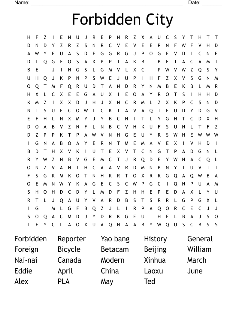 Forbidden City Word Search WordMint
