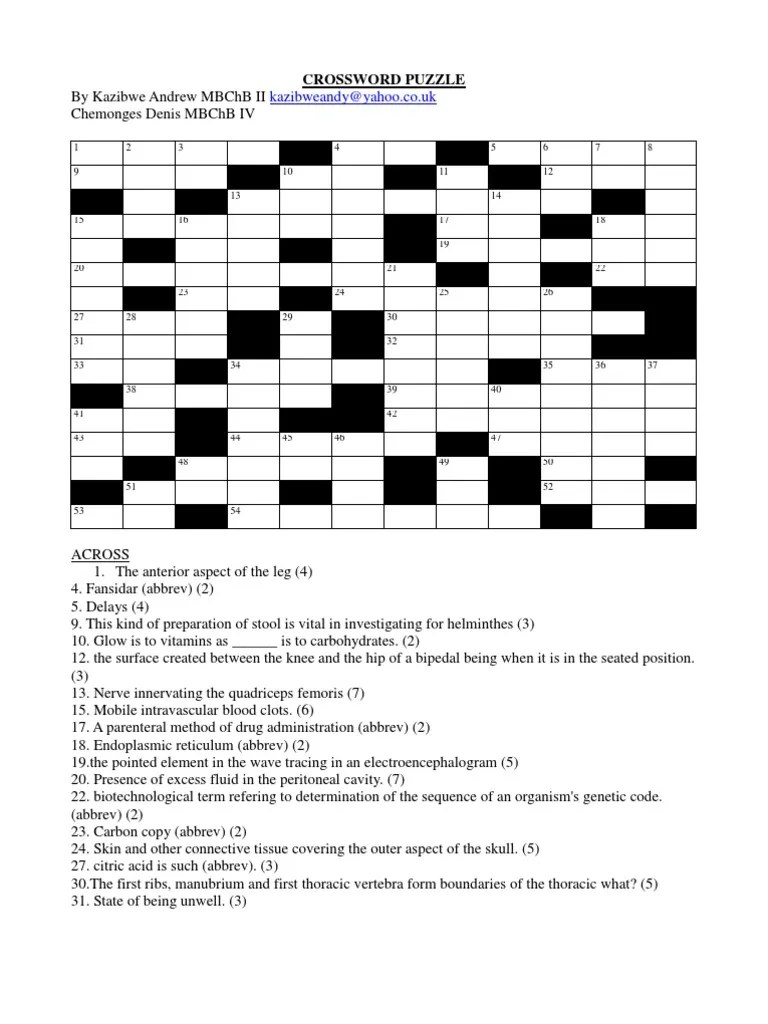 Crossword Puzzle Vertebral Column Animal Anatomy